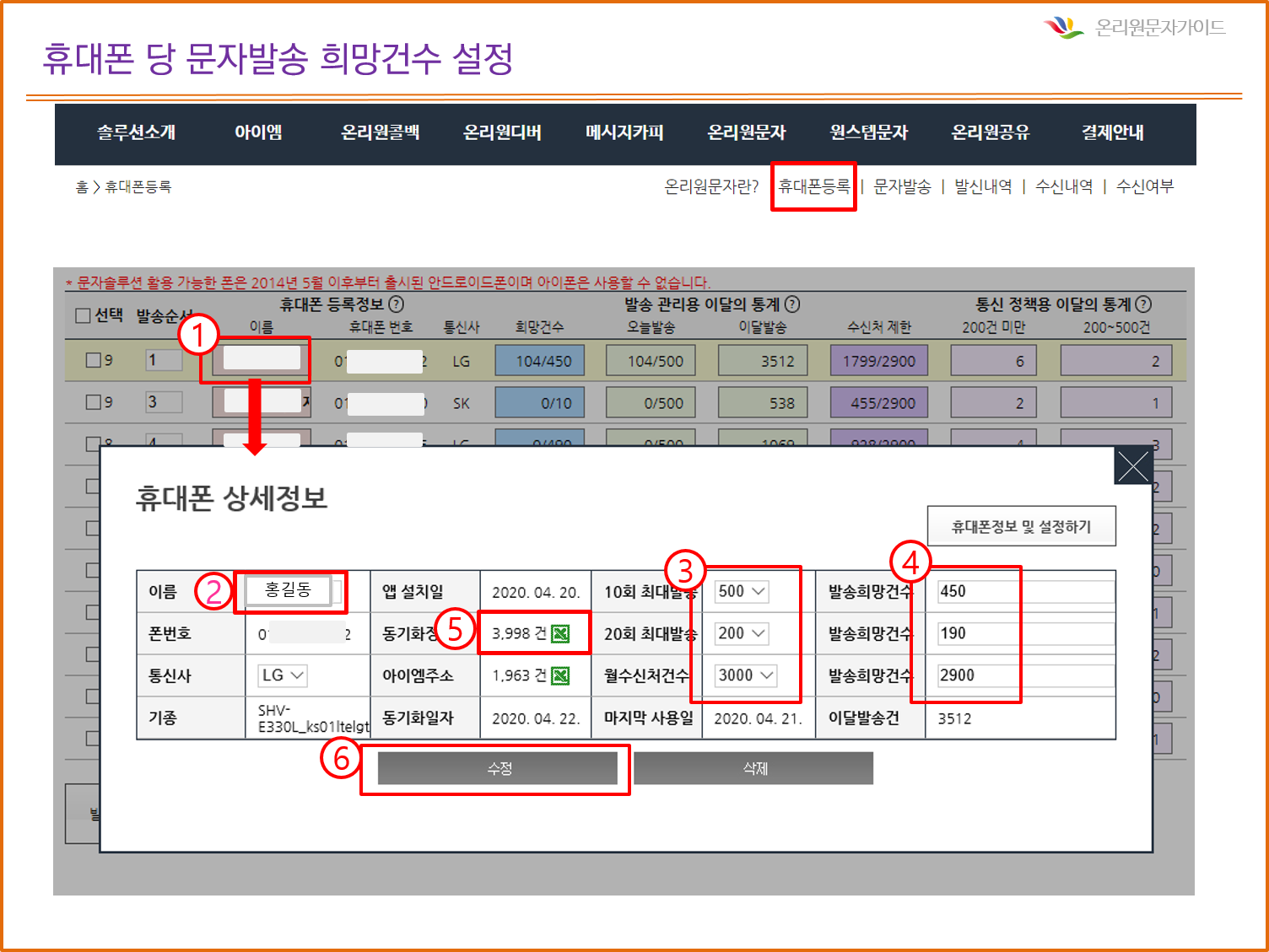 문자 [온리원문자] 발송건수 및 수신처수 직접 설정 2020-04-22 46827